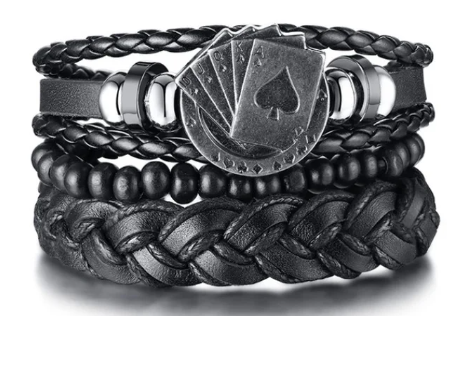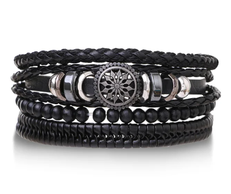 4Pcs/ Set Braided Wrap Leather Bracelets for Men Vintage Life Tree Rudder Charm Wood Beads Ethnic Tribal Wristband Rope Bracelet