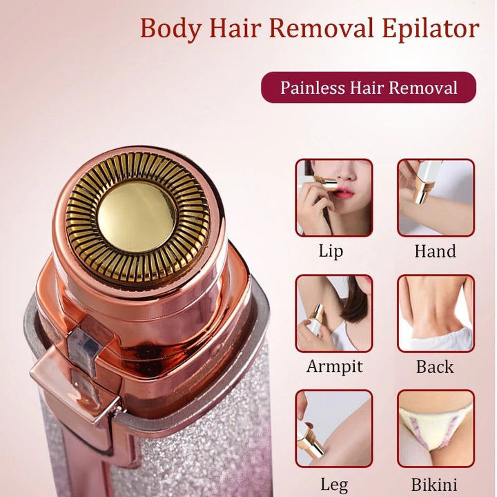 - 2 IN 1 Rechargeable Electric Eyebrow Trimmer Epilator Female Body Facial Lipstick Shape Hair Removal Mini Painless Razor Shaver